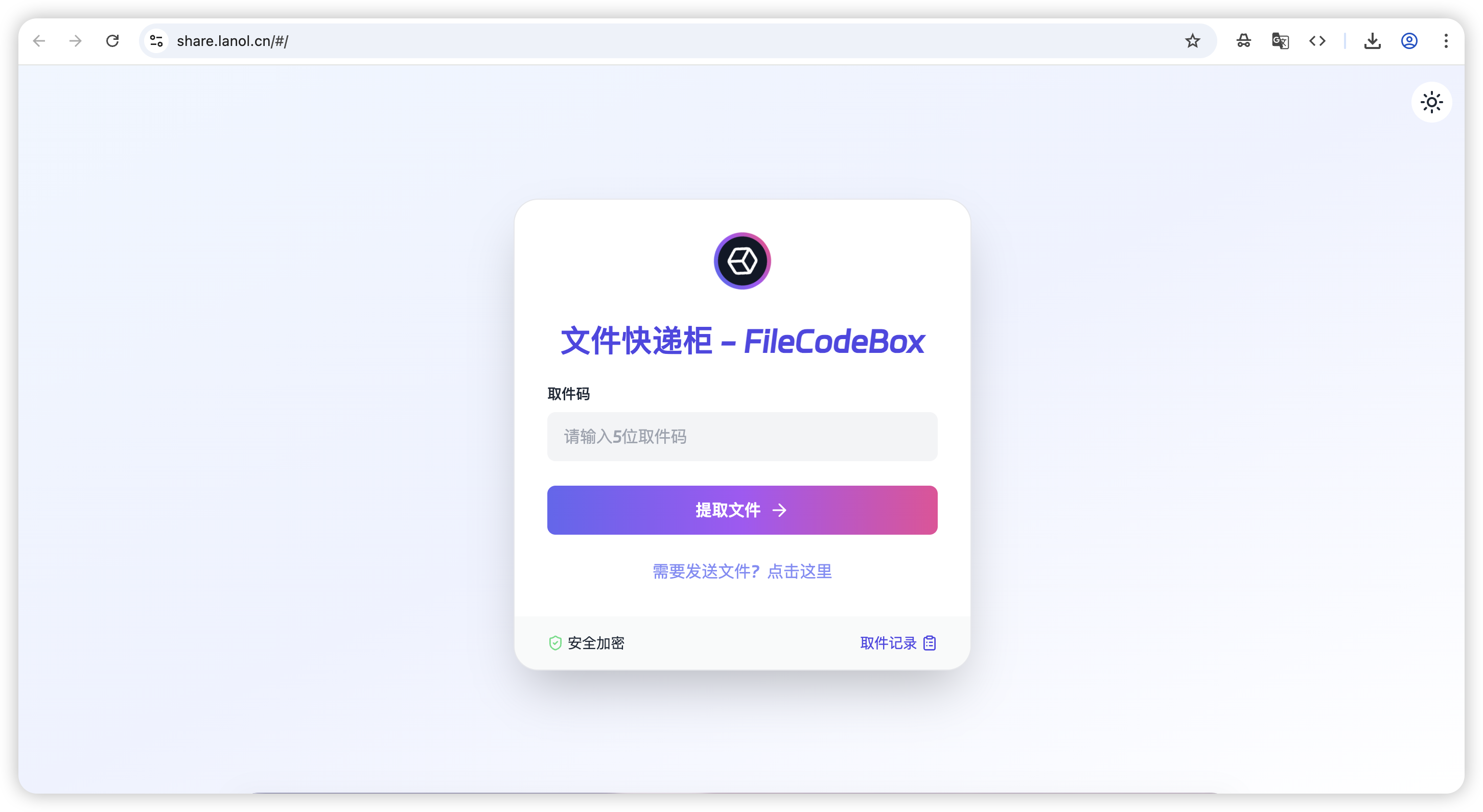 本项目顾名思义,就是可以像拿快递一样简单,可以发送/收取文件,功能实现不难,但是这个项目的想法还是蛮有趣的,有兴趣的小伙伴可以体验部署一下,下面是作者在开源网站留下的在线体验链接